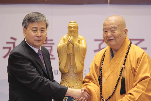 郭樹清說,山東是孔子故鄉(xiāng),孔孟文化代代相傳,在社會文化中發(fā)揮重要作用。此次來到臺灣,為佛陀紀念館帶來了孔子雕像,希望兩岸人民能找到中華文化的共鳴。星云法師表示,自己對于孔子的信仰和佛教一樣虔誠,也希望孔子在佛陀紀念館中有其地位。兩岸人民從歷史、文化上都有著高度的一致,兩岸文化交流必能和諧發(fā)展。