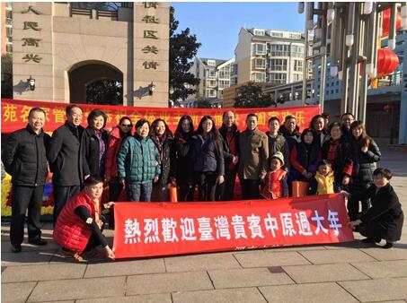 來(lái)自臺(tái)灣的游客張?jiān)娾概蛥敲畲航忝靡卜謩e走進(jìn)錦華苑小區(qū)的姜富凡家庭和方保營(yíng)家庭,和中原同胞一起歡歡喜喜過(guò)大年。