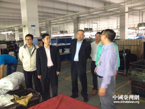 廣東省臺辦副主任陳林佐到中山市易惠日用制品有限公司調研。(圖片來源:中山市臺辦)