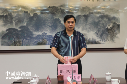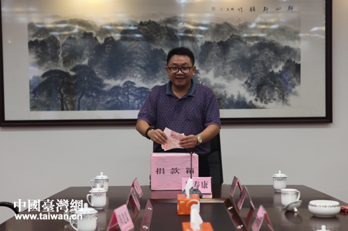 梅州市臺聯會會長、華鼎新維企業董事長洪亮先生捐款。(圖片來源:梅州市臺辦)