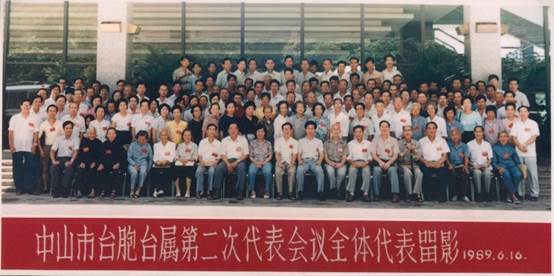 19896月15日—16日,中山市臺灣同胞臺胞親屬第二次代表會議在長江賓館召開,全市臺胞臺屬代表和特邀代表共182人參加會議。時任中山市領導楊少云、沈大啟、李世衍等出席了會議。會議選舉張漢文為市臺聯第二屆理事會會長。