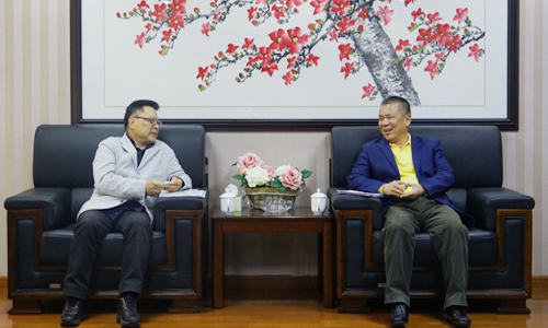 廣東省臺辦主任黃耿城(右)會見臺灣工商團體秘書長聯誼會秘書長黃章富