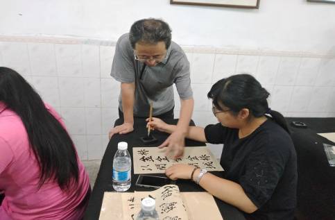 嘉應(yīng)學(xué)院麻愛民教授現(xiàn)場指導(dǎo)營員學(xué)習(xí)書法