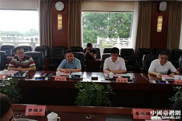 惠州市委臺辦、市衛計局負責人與考察團一行座談交流。(圖片來源:惠州市臺辦經濟聯絡科)