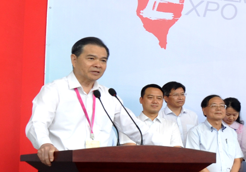 省臺辦副主任方濤(左二)、兩岸企業家峰會秘書長陳瑞隆(左三)、惠州市長麥教猛(左四)參觀臺博會