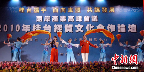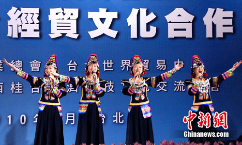 廣西壯族自治區黨委書記郭聲琨率領1000余人的廣西經貿文化代表團7月1日—7月5日在臺灣參訪,客家人聚居的廣西賀州市隨廣西團一起赴臺,廣西代表團一項重頭戲活動就是舉行桂臺經貿文化合作論壇,賀州客家姑娘唱起客家山歌為活動助興。作 者:廖祖平