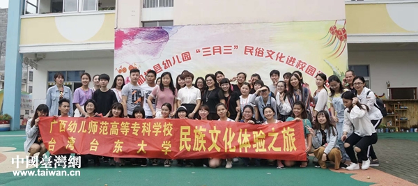 中國臺灣網5月30日那坡訊 5月23日,臺灣臺東大學、廣西幼兒師范高等專科學校師生一行60人到廣西那坡縣幼兒園開展桂臺師生民族文化體驗活動,考察那坡縣黑衣壯風情園,參觀和體驗那坡壯鄉特色少數民族民風民俗。