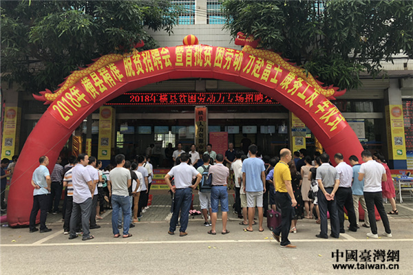 中國(guó)臺(tái)灣網(wǎng)7月2日橫縣訊 近日,廣西南寧市橫縣舉辦2018年貧困勞動(dòng)力專(zhuān)場(chǎng)招聘會(huì)暨首批貧困勞動(dòng)力赴南寧富士康務(wù)工發(fā)車(chē)儀式,來(lái)自全縣17個(gè)鄉(xiāng)鎮(zhèn)25名貧困勞動(dòng)力乘上大巴前往南寧富士康公司務(wù)工,開(kāi)啟他們的脫貧致富之路。
