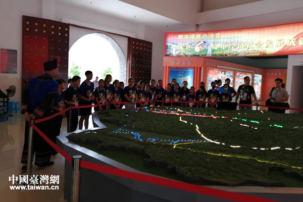 參觀都安地形沙盤。(圖片來源:廣西都安縣臺僑辦通訊員)