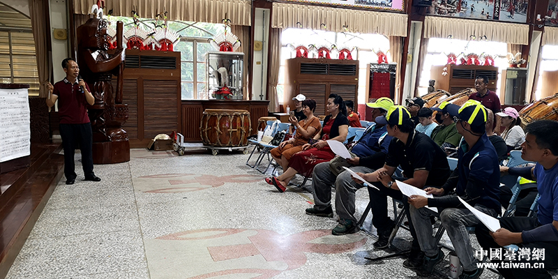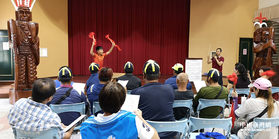中國臺灣網8月5日訊 日前,廣西南寧市馬山縣山城壯族會鼓協會的5名技師到臺灣花蓮縣新城鄉,向當地14名花蓮同胞傳授馬山壯族會鼓擊打技藝。
