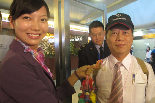 市委常委、副市長周道許到機場迎接遠道而來的臺灣游客。大家敲響鑼鼓,舞起彩獅,讓臺灣游客一下飛機就感受到貴陽人的熱情。