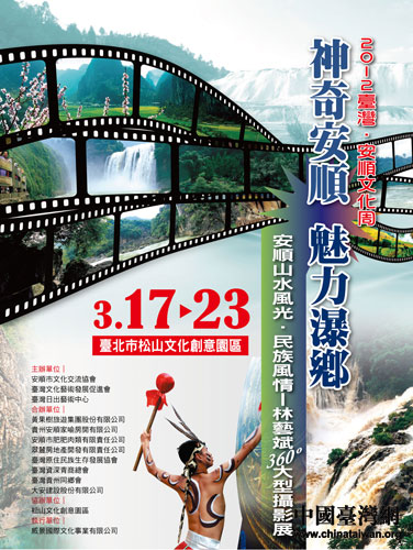 中國臺灣網3月13日貴州安順消息 “2012臺灣·安順文化周暨貴州安順山水風光-林藝斌360°大型攝影展”將于3月17日-23日在臺北松山文創園區隆重舉行。