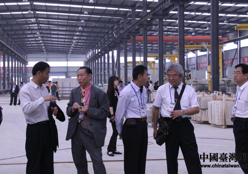 臺灣嘉賓參觀石材加工工藝。(貴陽市臺辦 胡珊珊 攝)