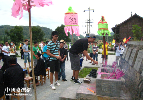 臺(tái)灣大學(xué)生在給水族祖先敬香。(黔南州臺(tái)辦 桂勇 攝)