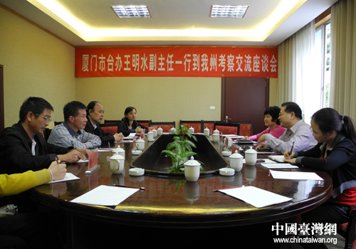 中國臺灣網10月8日黔西南消息 日前,廈門市臺辦王明水副主任、張殿亮副巡視員一行6人到黔西南州考察交流。一到黔西南,馬上和黔西南州臺辦同志一道召開了對臺工作座談會。州人民政府州長助理董洪亮出席座談會并致辭,州臺辦楊麗敏主任介紹了黔西南州近年來對臺工作情況。