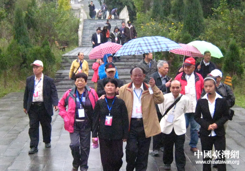 參訪過程中,風雨無阻的前行。(黔南州臺辦 桂勇 攝)