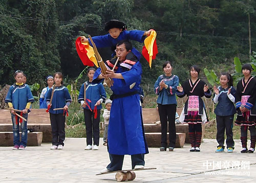 平衡木上的父子。(安順臺辦陳興源 攝)