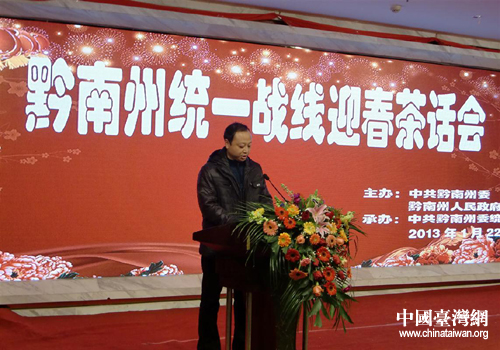 中國臺灣網1月28日都勻消息 日前,黔南州委、州人民政府在都勻市舉行黔南州統一戰線迎春茶話會。州委副書記、州人民政府州長向紅瓊、州人大常委會主任羅毅、州政協主席高金林、州副書記吳勝華等州領導出席,10名臺胞臺商臺屬代表和150多名各族各界代表一同參加。