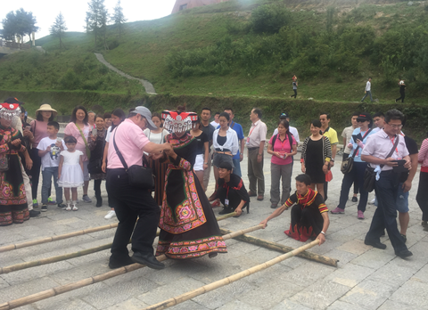 在水城縣海平村,當(dāng)?shù)匾图业墓媚锖托』镒觽冇盟麄儶?dú)特的方式迎接遠(yuǎn)道而來的臺灣客人。簡單優(yōu)美的噠踢舞、承載迎賓情意的敬酒歌、富有節(jié)奏感的竹竿舞……彝族人的熱情豪邁讓交流團(tuán)一行感動(dòng)不已。當(dāng)看到一棟棟錯(cuò)落有致、獨(dú)具一格的千戶彝寨,大家由衷贊嘆六盤水市的基層管理服務(wù)工作做得順民意,合民心,紛紛表示這兒的人文素質(zhì)、民族風(fēng)情都特別好,很喜歡這個(gè)地方。