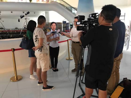 在平塘國際天文體驗館,兩岸媒體團觀看天文射電望遠鏡模型,了解恒心、引力波、黑洞、太陽系家族等相關天文知識。參觀結束后,臺灣媒體人一致認同:天文體驗館是一個非常好的天文科普基地,值得向廣大臺灣同胞推廣。