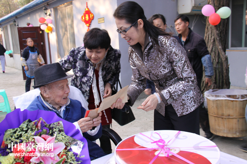 貴州省臺辦聯絡處處長成高榮受省委統戰部副部長、省臺辦主任周素平的委托,向楊老先生表示衷心的祝福。(貴陽市臺辦 段小芬 攝)