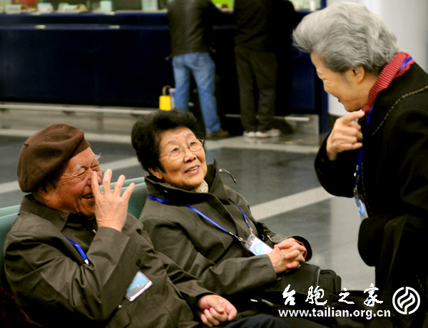老臺胞們談到馬上就能回到故鄉,喜悅心情溢于言表。徐波 攝