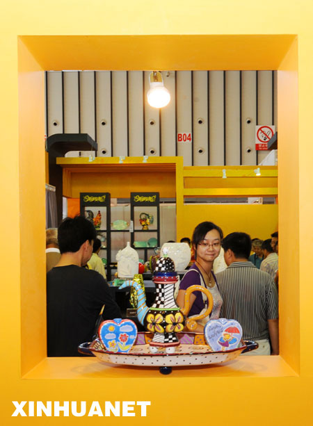 南京市民在參觀臺灣一家陶瓷企業(yè)的展位。