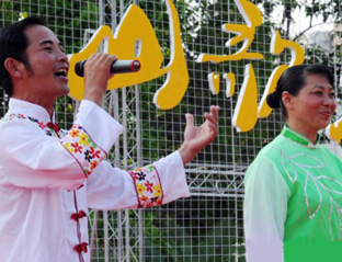 10月17日下午,閩西山歌手李銀蘭、許開聰在海峽兩岸客家山歌賽上原汁原味的山歌表演深情并茂、獲得該賽事第一名。當(dāng)日,海峽兩岸客家山歌賽在客家祖地福建上杭縣舉行,17位來自海峽兩岸的山歌手參加了該比賽。兩岸客家山歌手拉歌、情歌對(duì)唱,高潮迭起,吸引近千民眾爭(zhēng)睹。(記者 劉可耕 攝)