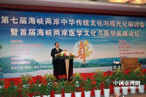 中共浙江省委副書記,浙江省省長呂祖善致歡迎辭。他代表中共浙江省委、省政府對研討會隆重召開表示熱烈祝賀。他說,加強兩岸醫療衛生交流,加深了解,弘揚中國文化的優秀產品,建設兩岸人民共有的精神家園,不僅體現了共同推進兩岸醫衛事業發展的愿望,也體現了兩岸民眾加強了解與溝通,共同譜寫和諧發展的美好愿景。