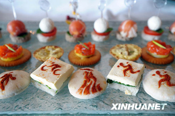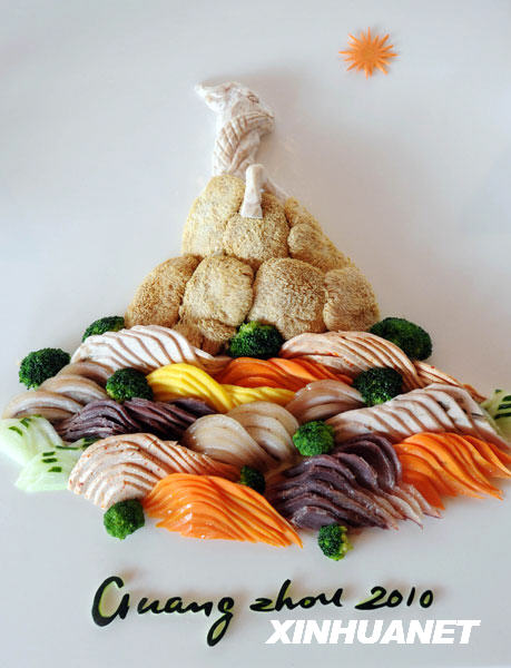 圖為3月25日拍攝的一份按照廣州亞運會會徽圖案制作的葷素冷拼。新華社記者劉大偉攝