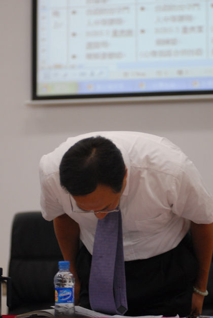 5月26日上午,深圳富士康龍華園區,郭臺銘在新聞發布會上對接連出現的員工跳樓自殺事件表示道歉。新華社記者 陳曄華 攝