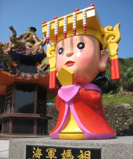 據“中央社”報道,游客到宜蘭北方澳進安宮遠遠就可看到廟旁一尊3米高的Q版“海軍媽祖”,模樣可愛逗趣,大家都忍不住發出贊嘆,爭相留影紀念。