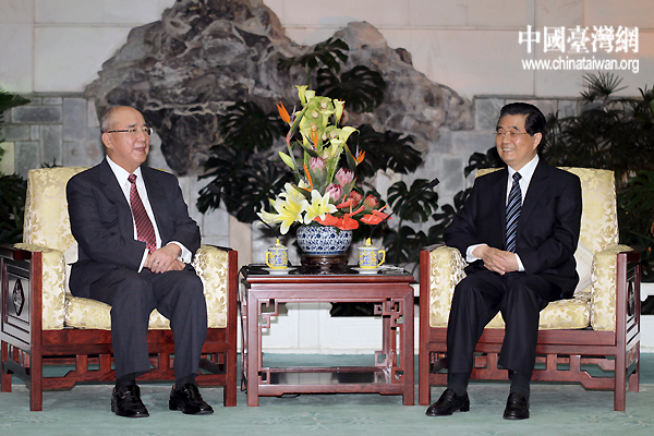 7月12日下午,中共中央總書記胡錦濤在北京釣魚臺(tái)賓館會(huì)見了中國(guó)國(guó)民黨榮譽(yù)主席吳伯雄一行。(中國(guó)臺(tái)灣網(wǎng) 田云鵬 攝)