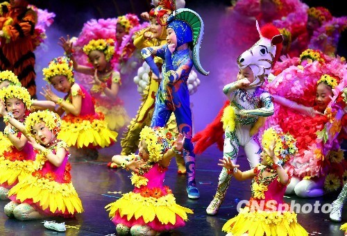 北京藍天兒童藝術團7月28日晚在臺北進行公益演出,所得善款將全部捐獻給臺南災區。演出的歌舞劇《十二吉祥》以中華民族傳統生肖文化為主題,展示濃郁的中華民族傳統風情和燦爛不息的民族文化底蘊。 中新社發 宋吉河 攝