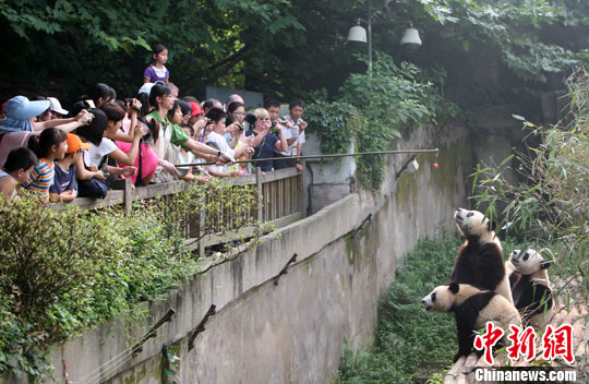 7月29日,受中共四川省委書記劉奇葆邀請,由臺灣民意代表馬文君率領的126名臺灣“9·21”大地震災區和“8·8”風災災區的學生來到成都大熊貓繁育研究基地,與大熊貓近距離接觸中新社發 劉忠俊 攝