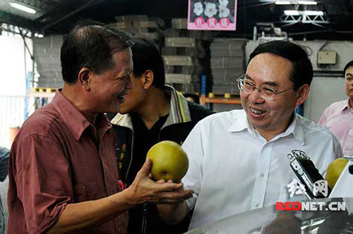 湖南和苗栗的情誼,今后將通過農業經濟等領域的合作,讓兩地百姓互惠而得以繼續。正在臺灣參訪的中共湖南省委副書記梅克保今天走訪苗栗農會,他表示歡迎農會帶技術來湖南辦農場,或通過直銷把苗栗水果帶到湖南。隨行的湖南省連鎖商業協會會長胡子敬亦當場表態,將全力以赴,組織湖南超市設立臺灣卓蘭鎮水果專柜。