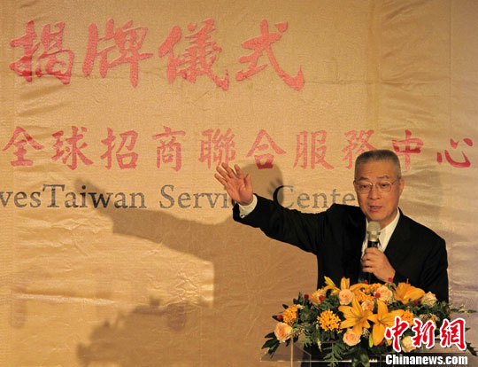 兩岸經濟合作框架協議(ECFA)簽署之后,臺灣當局努力推動經濟轉型升級,為開創臺灣經濟發展的“黃金十年”主動出擊,積極招商布局。圖為臺灣“行政院長”吳敦義在揭牌儀式上指出,ECFA將給臺灣產業的發展與轉型帶來契機。中新社發 路梅 攝