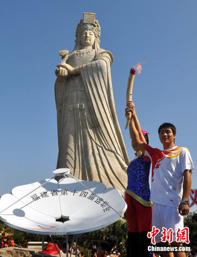 9月26日,福建省第十四屆運動會圣火采集儀式在“媽祖故里”莆田湄洲島媽祖圣像廣場舉行,這是繼今年7月21日中國第五屆特殊奧林匹克運動會圣火采集儀式在湄洲島媽祖雕像前舉行后,媽祖故里再次點燃圣火。圣火采集儀式結束后,火炬傳遞啟動儀式隨即在湄洲島天后廣場舉行,來自福建各地、臺灣金門等兩岸14名火炬手在湄洲島進行火炬傳遞,沿途上千名群眾載歌載舞,與火炬手一同感受火炬傳遞帶來的快樂、平安和吉祥。