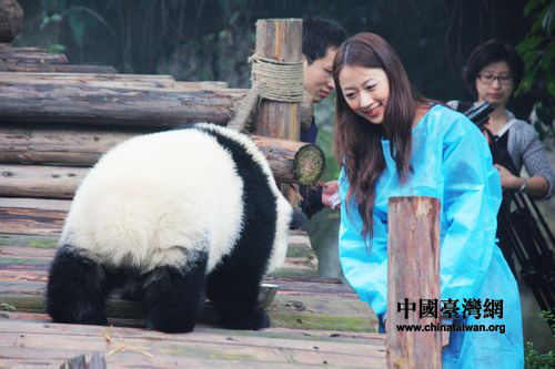 中國臺灣網(wǎng)10月20日成都消息 新近當(dāng)選“熊貓守護(hù)使”的臺大美女模特王郁文在走馬上任之初便活動(dòng)不斷。19日上午,王郁文出現(xiàn)在成都大熊貓繁育研究基地內(nèi)部,與熊貓來了一次“親密接觸”。