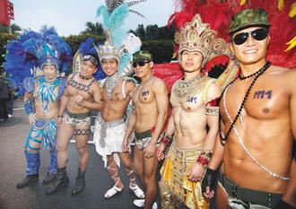 同志坐在花車上妖嬈演出,搶盡路人目光。圖片來源:臺灣《聯合報》