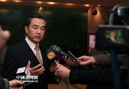 12月22日下午,中共中央臺辦、國務院臺辦主任王毅到首都機場迎接從臺北返回北京的海協會會長陳云林一行。圖為王毅在機場接受媒體采訪。(中國臺灣網 田云鵬 攝)