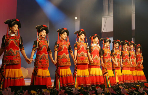 苗栗縣府邀請彝族自治區的涼山州歌舞團,1日、2日兩晚在苗栗縣文化局演出,并免費開放民眾欣賞,1日晚7時整,近百名團員、舞者輪番上陣,不僅有男女群舞、獨唱,還有彝族民間器樂演奏、川劇民俗表演、原生態演唱等,演出者不時還與臺下觀眾互動,氣氛熱絡。