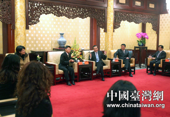 3月22日下午,中共中央臺辦主任王毅在北京釣魚臺賓館會見來訪的臺灣前高雄縣長楊秋興一行。 (中國臺灣網 田云鵬 攝)