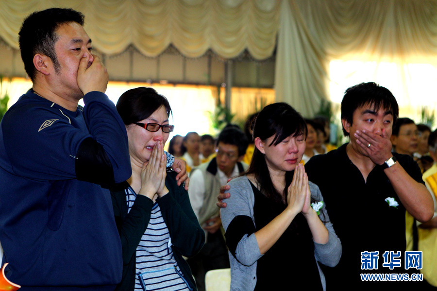 5月3日,遇難者親屬在臺灣嘉義市殯儀館悼念逝去的親人。當日是臺灣阿里山小火車翻車事故發生后的第七天,遇難者親屬們再次來到嘉義市殯儀館,悼念逝去的親人。新華社記者 龔兵 攝