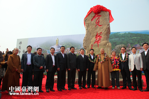 星云大師為其親題的覺華島石碑揭幕。(圖片來源:葫蘆島市臺辦)