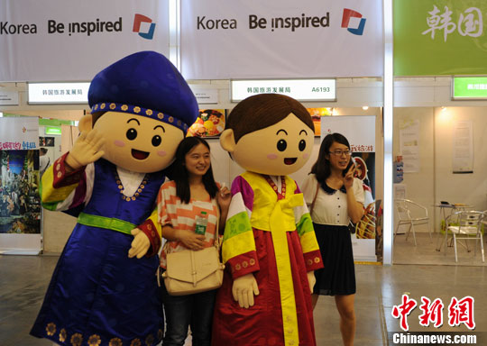圖為展會上的韓國卡通娃吸引民眾。中新社發 劉忠俊 攝