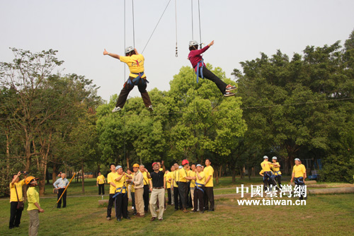 兩岸校長在東莞臺商子弟學校生命力營地體驗團隊互助協作!。ㄖ袊_灣網發 王羽威攝)