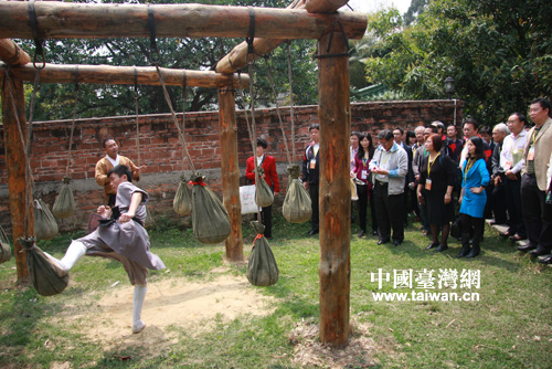 兩岸校長參觀廣東省華僑職業技術學校禪武中心,體驗中華武術文化。(中國臺灣網發 王羽威攝)