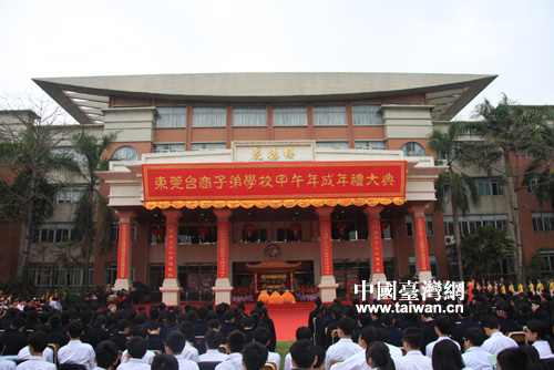 中國臺灣網3月29日東莞消息 3月26日至28日,第三屆海峽兩岸(粵臺)中等教育論壇暨東莞臺商子弟學校甲午年成年禮大典于在東莞臺商子弟學校隆重舉行。本屆論壇以中華文化傳承與創新教育為主軸,探討中華文化與感恩教育、創新中華文化教育課程兩大主題。同時,東莞臺商子弟學校為高二學生舉辦了甲午年成年禮大典,成為兩岸中等教育學校傳承中華文化教育的示范活動。