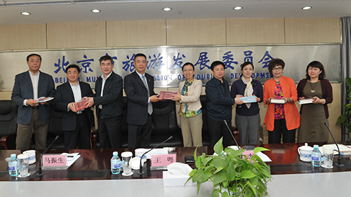 2014年4月1日,來(lái)自北京市接待臺(tái)灣游客的旅行社負(fù)責(zé)人、導(dǎo)游聚集一堂,參加《寶島游客逛北京》發(fā)書(shū)儀式。北京市旅游發(fā)展委員會(huì)副主任王粵、北京市人民政府臺(tái)灣事務(wù)辦公室副巡視員馬振生、北京市人民政府新聞辦公室副主任白杰出席。市旅游委、市臺(tái)辦有關(guān)部門(mén)領(lǐng)導(dǎo)、工作人員,國(guó)旅總社、中國(guó)旅行社總社(北京)有限公司、中青旅、春秋旅行社、康輝旅行社、凱撒國(guó)旅、新華國(guó)際旅行社、眾信旅行社、海峽旅行社、北京中國(guó)國(guó)際旅行社、中信旅游、神舟國(guó)際旅行社、環(huán)境國(guó)際旅行社等旅行社負(fù)責(zé)人、導(dǎo)游約40人參加了發(fā)書(shū)儀式。